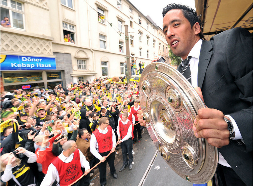 スポーツ サッカー 日本人選手 ブンデスリーガ制覇のドルトムント、市内で優勝パレード 2011年5月16日 11:35 発信地:ドルトムント/ドイツ [ ヨーロッパ ドイツ ] このニュースをシェア ‹ › ❮ 5/13 ❯ 10-11ドイツ・ブンデスリーガ1部の優勝を飾ったボルシア・ドルトムント(Borussia Dortmund)は15日、ドイツ西部ドルトムント(Dortmund)市内で優勝パレードを行い、ファンと共に喜びを分かち合った。写真は優勝パレードでマイスターシャーレ(優勝皿)を手にするボルシア・ドルトムントのルーカス・バリオス(Lucas Barrios、2011年5月15日撮影)。(c)AFP/POOL/TORSTEN SILZ 画像作成中 ! 【5月16日 AFP】10-11ドイツ・ブンデスリーガ1部の優勝を飾ったボルシア・ドルトムント(Borussia Dortmund)は15日、ドイツ西部ドルトムント(Dortmund)市内で優勝パレードを行い、ファンと共に喜びを分かち合った。 サッカー 一覧へ> メディア・報道関係・法人の方向け 写真・動画 購入のお問合せ>