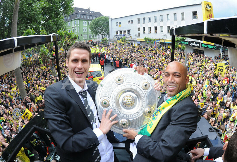 スポーツ サッカー 日本人選手 ブンデスリーガ制覇のドルトムント、市内で優勝パレード 2011年5月16日 11:35 発信地:ドルトムント/ドイツ [ ヨーロッパ ドイツ ] このニュースをシェア ‹ › ❮ 3/13 ❯ 10-11ドイツ・ブンデスリーガ1部の優勝を飾ったボルシア・ドルトムント(Borussia Dortmund)は15日、ドイツ西部ドルトムント(Dortmund)市内で優勝パレードを行い、ファンと共に喜びを分かち合った。写真はマイスターシャーレ(優勝皿)を手にするボルシア・ドルトムントのセバスチャン・ケール(Sebastian Kehl、左)とデデ(Dede、2011年5月15日撮影)。(c)AFP/POOL/TORSTEN SILZ 画像作成中 ! 【5月16日 AFP】10-11ドイツ・ブンデスリーガ1部の優勝を飾ったボルシア・ドルトムント(Borussia Dortmund)は15日、ドイツ西部ドルトムント(Dortmund)市内で優勝パレードを行い、ファンと共に喜びを分かち合った。 サッカー 一覧へ> メディア・報道関係・法人の方向け 写真・動画 購入のお問合せ>