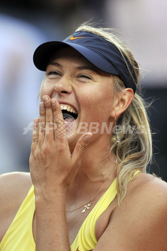 昨年5月のストラスブール国際(Internationaux de Strasbourg 2010)以来の優勝を果たしたシャラポワは、開幕間近の全仏オープンテニス2011(French Open 2011)に向けて弾みをつけた。シャラポワは、4大大会(グランドスラム)では唯一全仏のタイトルのみ獲得できていない。(c)AFP/Barnaby Chesterman