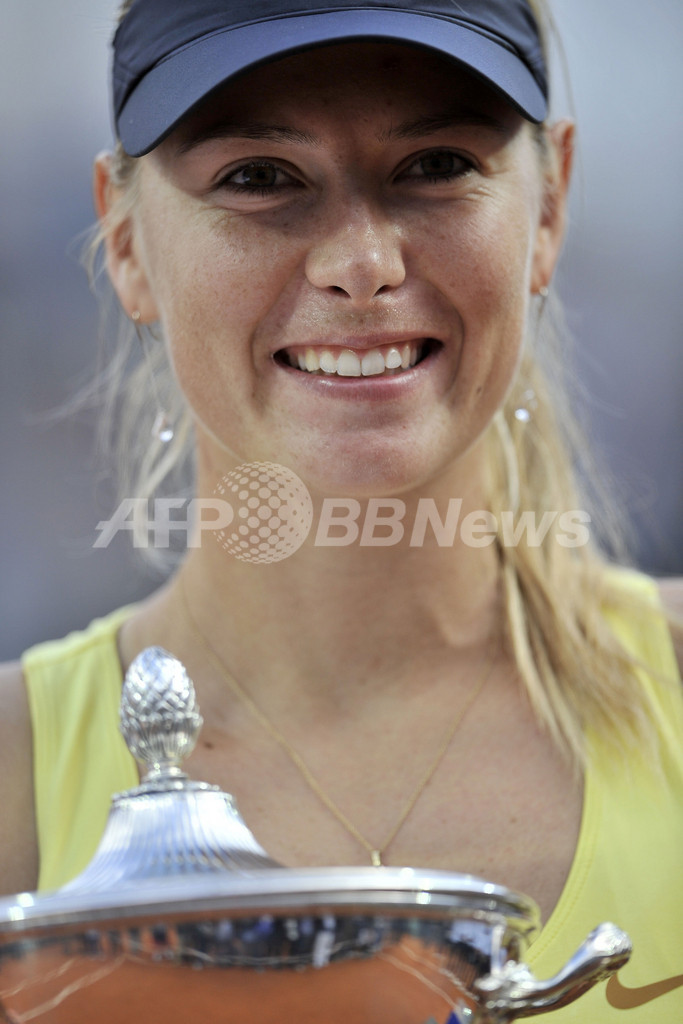 昨年5月のストラスブール国際(Internationaux de Strasbourg 2010)以来の優勝を果たしたシャラポワは、開幕間近の全仏オープンテニス2011(French Open 2011)に向けて弾みをつけた。シャラポワは、4大大会(グランドスラム)では唯一全仏のタイトルのみ獲得できていない。(c)AFP/Barnaby Chesterman