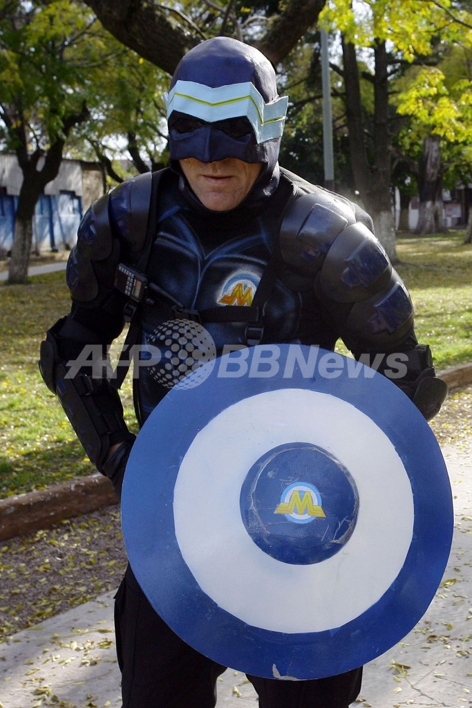 ニュース ライフ こぼれ話 町を見回るスーパーヒーロー、アルゼンチン 2011年5月18日 17:17 発信地:ブエノスアイレス/アルゼンチン [ 中南米 アルゼンチン ] このニュースをシェア ‹ › ❮ 11/12 ❯ アルゼンチンのブエノスアイレス(Buenos Aires)州ラヌス(Lanus)市で、「スーパーヒーロー」に扮して地域の見まわりをしている住民、メンガノさんが人気者となっている。写真はラヌスの公園でポーズをとるメンガノさん(2011年5月17日撮影)。(c)AFP/Maxi Failla 画像作成中 ! 【5月18日 AFP】アルゼンチンのブエノスアイレス(Buenos Aires)州ラヌス(Lanus)市で、「スーパーヒーロー」に扮して地域の見まわりをしている住民、メンガノさんが人気者となっている。(c)AFP ライフ 一覧へ> メディア・報道関係・法人の方向け 写真・動画 購入のお問合せ>