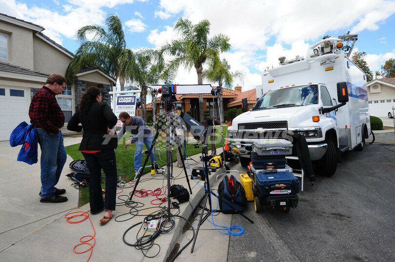 報道によると、隠し子の母親は家政婦のミルドレッド・パトリシア・バエナ(Mildred Patricia Baena)さん。シュワルツェネッガー氏がことし1月に知事を退任するまで、20年間にわたってシュワルツェネッガー家の家政婦だった。ロサンゼルス(Los Angeles)から160キロ北に離れたベーカーズフィールド(Bakersfield)にあるバエナさんの自宅前には大勢の報道陣が詰め掛け、バエナさんの帰宅を待ち構えている。(c)AFP/Michael Thurston