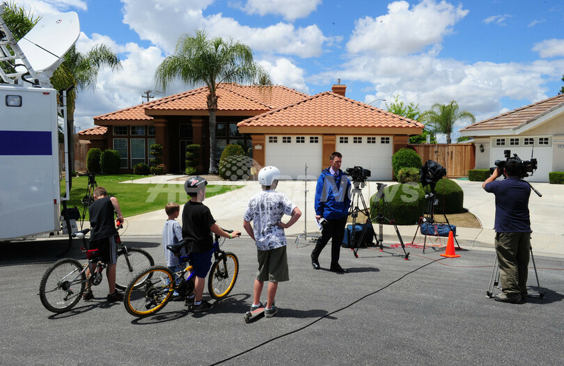 報道によると、隠し子の母親は家政婦のミルドレッド・パトリシア・バエナ(Mildred Patricia Baena)さん。シュワルツェネッガー氏がことし1月に知事を退任するまで、20年間にわたってシュワルツェネッガー家の家政婦だった。ロサンゼルス(Los Angeles)から160キロ北に離れたベーカーズフィールド(Bakersfield)にあるバエナさんの自宅前には大勢の報道陣が詰め掛け、バエナさんの帰宅を待ち構えている。(c)AFP/Michael Thurston