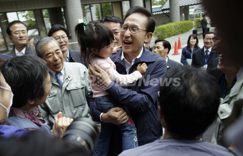 李大統領は宮城県名取市を訪問し、津波が残したがれきの前で献花して犠牲者を追悼した後、宮城県多賀城市の避難所を訪問した。NHKによると、ネービーブルーの作業服姿の李大統領は記者団に対し、震災でショックを受けた子どもたちを支援したいと語り、日本が震災から早期に復興することを望むと述べた。