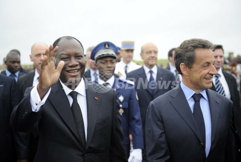 就任式には、アフリカ各国首脳のほか、国連(UN)の潘基文(パン・キムン、Ban Ki-moon)事務総長や旧宗主国フランスのニコラ・サルコジ(Nicolas Sarkozy)大統領が参列した。(c)AFP