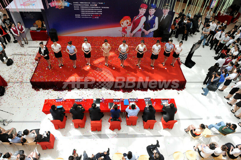 急拡大する航空市場に対応するため同社はエアバス(Airbus)から総額37億8000万ドル(約3100億円)で旅客機36機を購入することが決まっている。(c)AFP