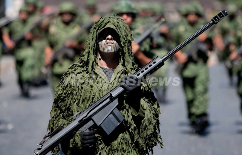 ニュース 政治・経済 草むらや動物になりすました狙撃手たち、メキシコの軍事パレード 2011年5月25日 11:35 発信地:シウダー・フアレス/メキシコ [ 中南米 メキシコ ] このニュースをシェア ‹ › ❮ 2/3 ❯ メキシコ・シウダー・フアレス(Ciudad Juarez)で行われた軍事パレードで行進する軍の特別狙撃隊(2011年5月21日撮影)。(c)AFP/JESUS ALCAZAR 画像作成中 ! 【5月24日 AFP】新たに世界遺産に登録されたメキシコのシウダー・フアレス(Ciudad Juarez)で21日、メキシコ革命の勝利から100周年を祝う記念行事が行われた。目玉は、兵士約400人が参加する軍事パレードだ。(c)AFP 政治・経済 一覧へ> メディア・報道関係・法人の方向け 写真・動画 購入のお問合せ>