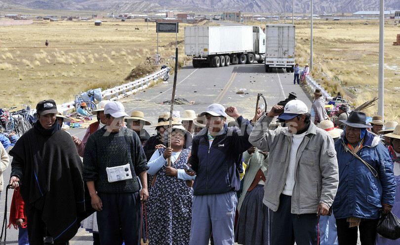 プーノ周辺では、カナダの鉱山会社ベア・クリーク(Bear Creek)の進出に反対する地元先住民族アイマラ(Aymara)の人びとが16日前、ペルー南部とボリビアを結ぶ幹線道路を封鎖し、混乱が続いている。ベア・クリークでは同地域での銀の採掘を計画しているが、住民たちは河川や湖沼が汚染される懸念から反対している。