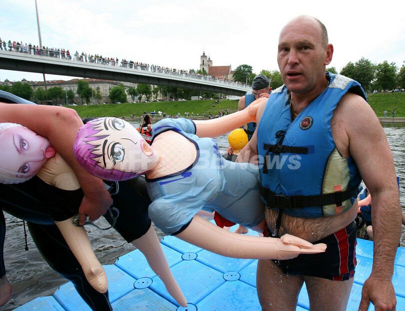 ニュース ライフ こぼれ話 ダッチワイフと泳ぐ水泳大会、リトアニア 2011年5月28日 16:20 発信地:ビリニュス/リトアニア [ ヨーロッパ リトアニア ] このニュースをシェア ‹ › ❮ 3/12 ❯ リトアニアの首都ビリニュス(Vilnius)を流れるネリス(Neris)川で27日、お気に入りのダッチワイフと一緒に250メートルを泳ぐ大会「バラクーダ2011(Barracudas 2011)」が開かれ、男性およそ20人が参加した。写真はレース後、「パートナー」を抱える男性(2011年5月27日撮影)。(c)AFP/PETRAS MALUKAS【関連記事】恒例のおもしろ水泳大会、今年も開催 ロシア 画像作成中 ! 【5月28日 AFP】リトアニアの首都ビリニュス(Vilnius)を流れるネリス(Neris)川で27日、お気に入りのダッチワイフと一緒に250メートルを泳ぐ大会「バラクーダ2011(Barracudas 2011)」が開かれ、男性およそ20人が参加した。(c)AFP ライフ 一覧へ> メディア・報道関係・法人の方向け 写真・動画 購入のお問合せ>