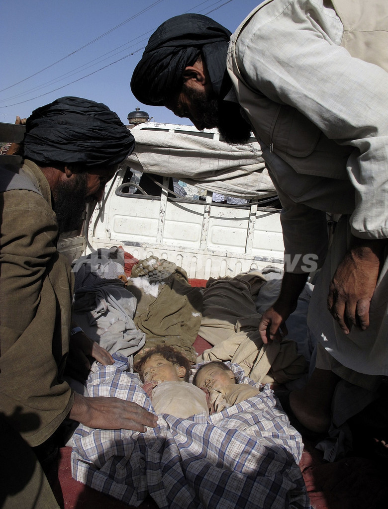 アフガニスタン南部ヘルマンド(Helmand)州ラシュカルガー(Lashkar Gah)で、北大西洋条約機構(NATO)主導の国際治安支援部隊(International Security Assistance Force、ISAF)の空爆で犠牲となった子ども(2011年5月29日撮影)。(c)AFP/Noor Mohammad