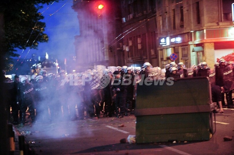 【5月30日 AFP】セルビアの首都ベオグラード(Belgrade)で29日、ボスニア・ヘルツェゴビナ内戦当時のセルビア人武装勢力司令官で戦犯として国際法廷に起訴されたラトコ・ムラディッチ(Ratko Mladic)被告(69)の身柄拘束に抗議する1万人規模のデモがあり、一部が投石するなど暴徒化して治安部隊と衝突、100人以上が逮捕された。