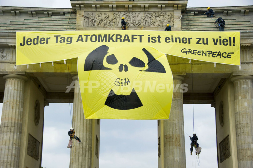 ニュース 環境・科学 命がけの作業、ベルリンの象徴に巨大反核メッセージ 2011年5月31日 13:51 発信地:ベルリン/ドイツ [ ヨーロッパ ドイツ ] このニュースをシェア ‹ › ❮ 9/11 ❯ 国際環境保護団体グリーンピース(Greenpeace)の活動家らは29日、ドイツ・ベルリン(Berlin)の象徴であるブランデンブルグ門(Brandenburg Gate)によじ登り、反核メッセージが書かれた巨大バナーを取り付けた(2011年5月29日撮影)。(c)AFP/ODD ANDERSEN 画像作成中 ! 【5月31日 AFP】国際環境保護団体グリーンピース(Greenpeace)の活動家らは29日、ドイツ・ベルリン(Berlin)の象徴であるブランデンブルグ門(Brandenburg Gate)によじ登り、反核メッセージが書かれた巨大バナーを取り付けた。(c)AFP 環境・科学 一覧へ> メディア・報道関係・法人の方向け 写真・動画 購入のお問合せ>