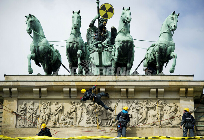 ニュース 環境・科学 命がけの作業、ベルリンの象徴に巨大反核メッセージ 2011年5月31日 13:51 発信地:ベルリン/ドイツ [ ヨーロッパ ドイツ ] このニュースをシェア ‹ › ❮ 4/11 ❯ 国際環境保護団体グリーンピース(Greenpeace)の活動家らは29日、ドイツ・ベルリン(Berlin)の象徴であるブランデンブルグ門(Brandenburg Gate)によじ登り、反核メッセージが書かれた巨大バナーを取り付けた(2011年5月29日撮影)。(c)AFP/ODD ANDERSEN 画像作成中 ! 【5月31日 AFP】国際環境保護団体グリーンピース(Greenpeace)の活動家らは29日、ドイツ・ベルリン(Berlin)の象徴であるブランデンブルグ門(Brandenburg Gate)によじ登り、反核メッセージが書かれた巨大バナーを取り付けた。(c)AFP 環境・科学 一覧へ> メディア・報道関係・法人の方向け 写真・動画 購入のお問合せ>