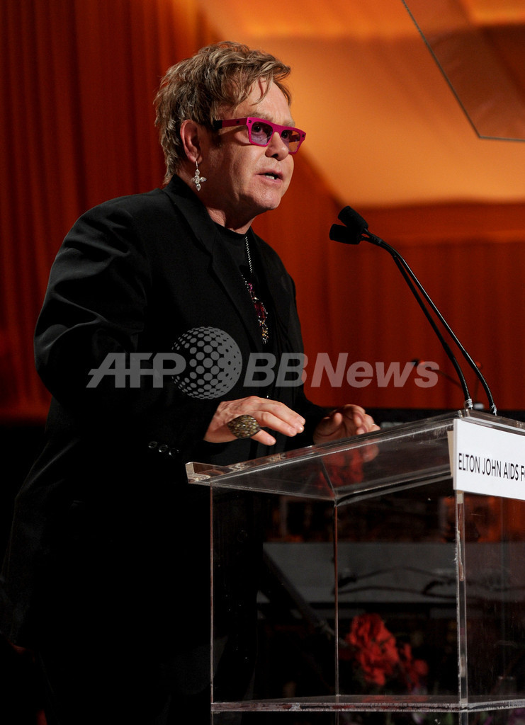 「エイズのために多くを失ったが、ここまで進歩した。ここであきらめることはできない。エルトンならこう言うでしょう。エイズとの闘いは医療分野でかつてないほどの支持を得ている。エイズ発症例の初の報告から30年を過ぎようとする中で、このキラーウイルスの根絶に向けて我々は行動しなければならない」(c)AFP/Michael Thurston