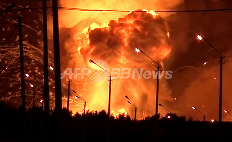 地元メディア報道によると、武器庫には廃棄予定の砲弾などTNT火薬58トン相当が保管されていた。3日になっても爆発と火災は続いており、テレビでは現場から火の玉が上がる様子や、黒煙が立ち上る様子が報じられている。露非常事態省によるとこれまでに30人が負傷、子ども1人を含む9人がやけどなどで入院した。(c)AFP
