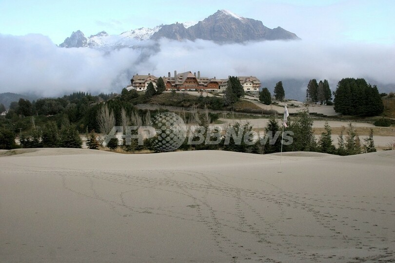 写真は、アルゼンチンの首都ブエノスアイレス(Buenos Aires)南方1600キロのバリロチェ(Bariloche)のゴルフコースに降り積もったプジェウエ山の火山灰(2011年6月5日撮影)。(c)AFP/Francisco Ramos Mejia