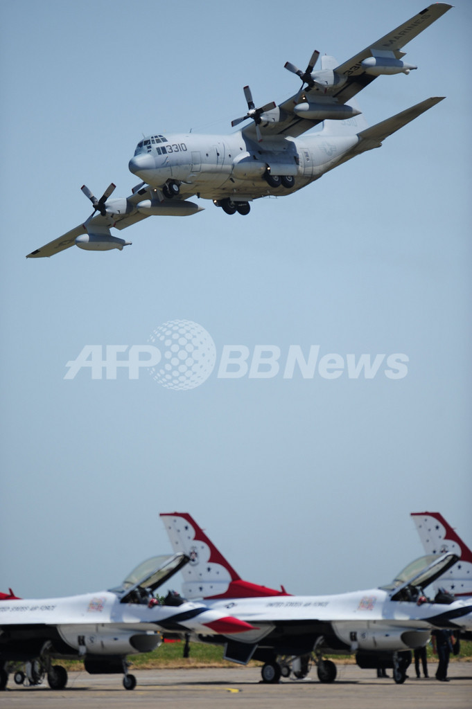 ニュース ライフ 米空軍「サンダーバーズ」など登場、ルーマニアの航空ショー 2011年6月11日 15:15 発信地:ルーマニア [ ヨーロッパ ルーマニア ] このニュースをシェア ‹ › ❮ 6/20 ❯ ルーマニア・コンスタンツァ(Constanta)そばの空港で8日、米国空軍のデモンストレーション飛行中隊「サンダーバーズ(Thunderbirds)」やルーマニア空軍による航空ショーが行われた。写真は空港上空を飛ぶ米空軍のKC-130機(2011年6月8日撮影)。(c)AFP/DANIEL MIHAILESCU 画像作成中 ! 【6月11日 AFP】ルーマニア・コンスタンツァ(Constanta)そばの空港で8日、米国空軍のデモンストレーション飛行中隊「サンダーバーズ(Thunderbirds)」やルーマニア空軍による航空ショーが行われた。(c)AFP ライフ 一覧へ> メディア・報道関係・法人の方向け 写真・動画 購入のお問合せ>