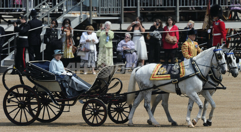 ニュース ライフ エリザベス女王、85歳の公式誕生日パレード 2011年6月12日 17:10 発信地:ロンドン/英国 [ ヨーロッパ 英国 ] このニュースをシェア ‹ › ❮ 16/24 ❯ 英ロンドンのホースガーズパレード(Horse Guards Parade、近衛騎兵練兵場)で11日、4月21日に85歳を迎えたエリザベス女王(Queen Elizabeth II)の「公式誕生日」を祝うパレードが行われた。 写真は自らの誕生日祝賀パレードのため、ホースガーズパレードに到着したエリザベス女王(2011年6月11日撮影)。(c)AFP/CARL COURT 画像作成中 ! 【6月12日 AFP】英ロンドンのホースガーズパレード(Horse Guards Parade、近衛騎兵練兵場)で11日、4月21日に85歳を迎えたエリザベス女王(Queen Elizabeth II)の「公式誕生日」を祝うパレードが行われた。 ライフ 一覧へ> メディア・報道関係・法人の方向け 写真・動画 購入のお問合せ>
