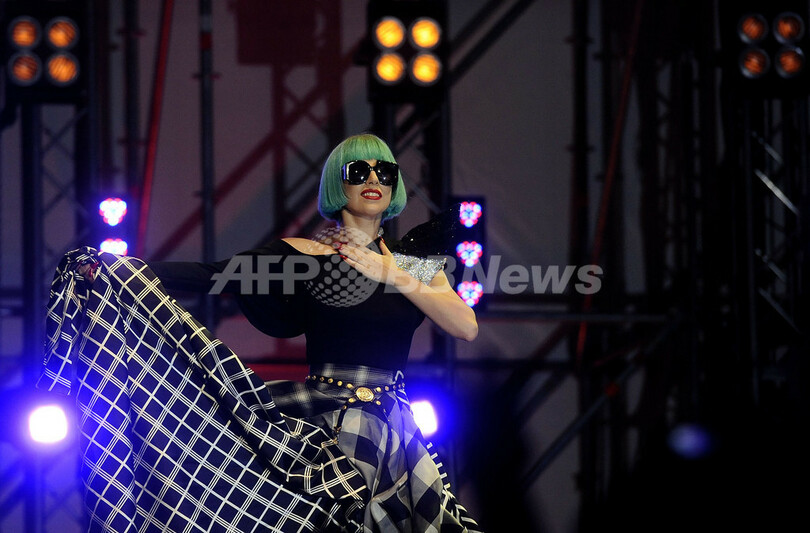 同性愛を認めない立場のローマ教会やシルビオ・ベルルスコーニ(Silvio Berlusconi)首相に対抗して、同性愛者のメッセージを世界に広めるため、今年は米国で活躍する歌手のレディー・ガガ(Lady Gaga)がゲストに招かれ、会場でパフォーマンスを披露した。(c)AFP