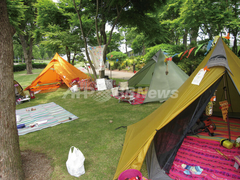 A.寝るのは、自分のテントで“個泊”が中心。一緒にいて気を使わず、寝るときは自分の空間でゆっくりできるのが、女子キャンプ流。テントに人形やレースを飾り付けし、その日だけのメルヘン空間にして楽しむのも良い。宿泊せず、お昼寝などで寛ぐだけのテントを楽しむのもいいかも。(c)senken h / text:大石真規子(SCREAM INC.)