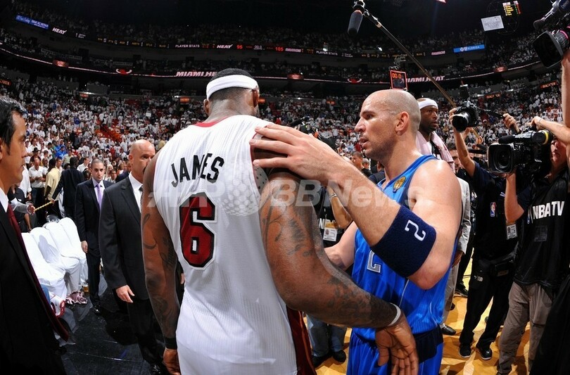 【6月13日 AFP】10-11NBAファイナル、マイアミ・ヒート(Miami Heat)対ダラス・マーベリックス(Dallas Mavericks)第6戦。試合はマーベリックスが105-95で勝利し、対戦成績4勝2敗で初優勝を果たした。
