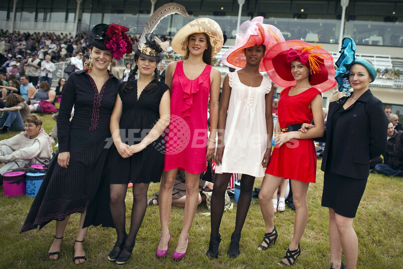 【6月13日 AFP】フランス・パリ郊外のシャンティー(Chantilly)で12日、競馬の第162回ディアヌ賞(Prix de Diane 2011)が開催された。会場では、女性たちのユニークな帽子がひときわ目立っていた。(c)AFP