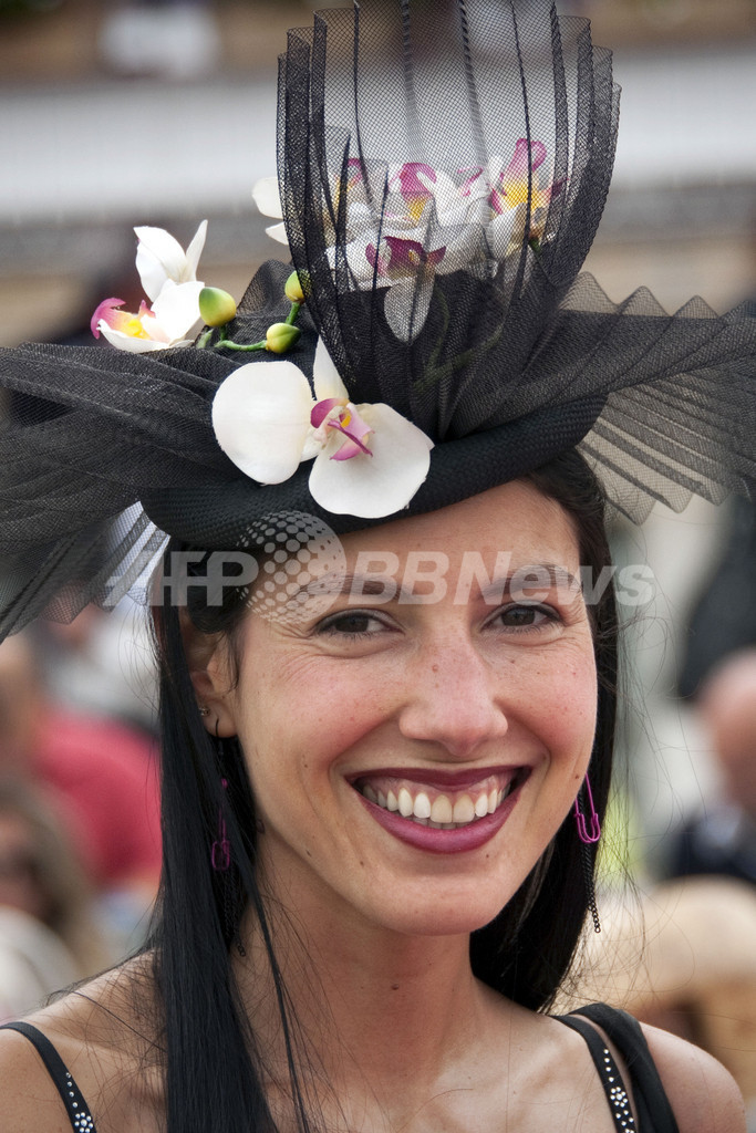 【6月13日 AFP】フランス・パリ郊外のシャンティー(Chantilly)で12日、競馬の第162回ディアヌ賞(Prix de Diane 2011)が開催された。会場では、女性たちのユニークな帽子がひときわ目立っていた。(c)AFP