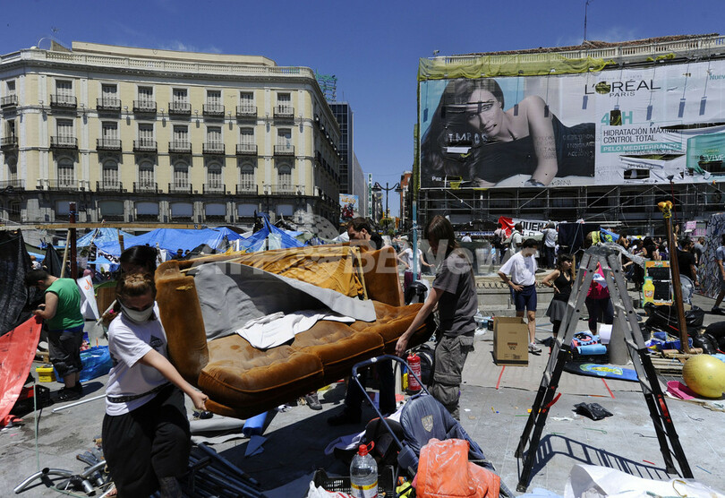 【6月13日 AFP】スペインの失業率の高さと経済危機に抗議し、首都マドリード(Madrid)のプエルタ・デル・ソル(Puerta del Sol)広場で5月15日から約1か月にわたって座り込みを続けていた若者らを中心とするデモ隊が12日、撤収を開始した。