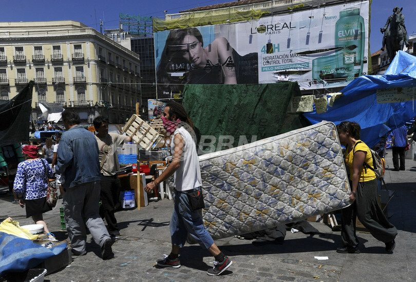 【6月13日 AFP】スペインの失業率の高さと経済危機に抗議し、首都マドリード(Madrid)のプエルタ・デル・ソル(Puerta del Sol)広場で5月15日から約1か月にわたって座り込みを続けていた若者らを中心とするデモ隊が12日、撤収を開始した。
