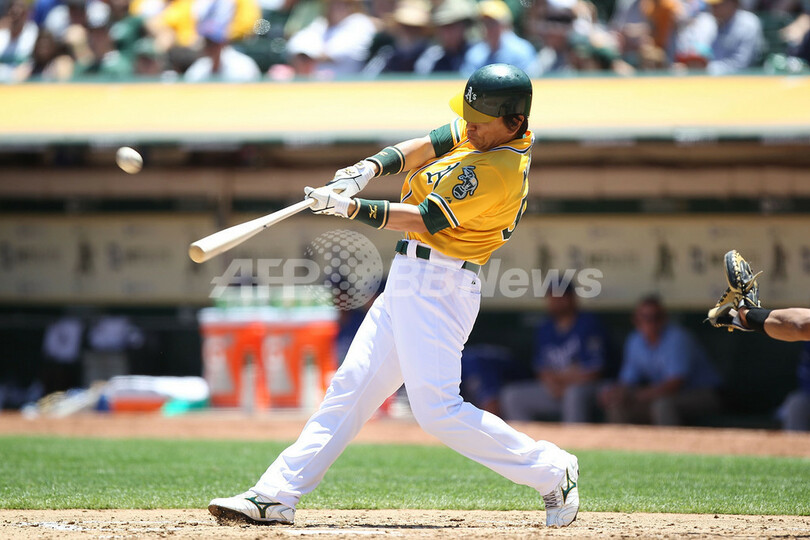 3番指名打者で先発出場したアスレチックスの松井秀喜(Hideki Matsui)は、3回裏に6号ソロ本塁打を放ち、4打数1安打1打点だった。(c)AFP