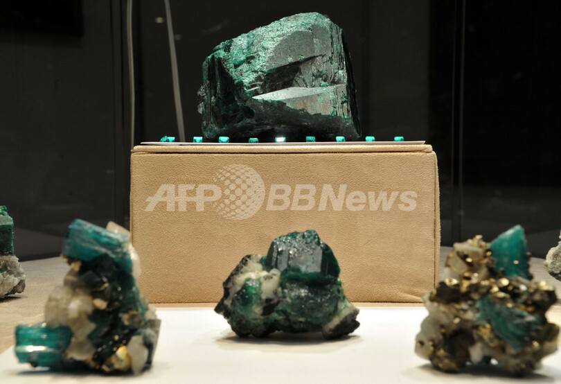 【6月19日 AFP】コロンビアの首都ボゴタ(Bogota)で開かれた鉱業と宝石の総合見本市「Minergemas 2011」で1万1000カラット、重さ2.27キロのエメラルドの原石が展示された。