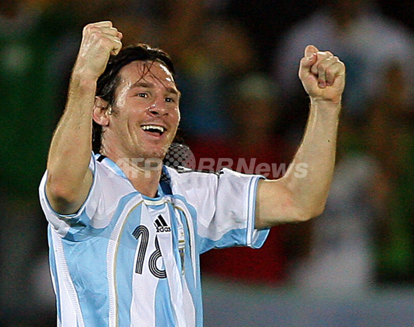 コパ・アメリカ2007(Copa America 2007)ベネズエラ大会。準決勝のメキシコ戦でゴールを決め喜ぶアルゼンチンのリオネル・メッシ(Lionel Messi、2007年7月11日撮影)。(c)AFP/Luis ACOSTA