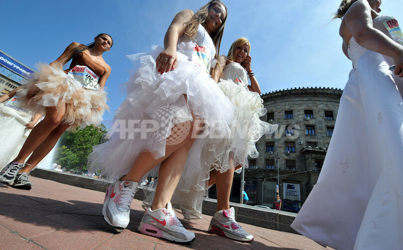 ニュース ライフ こぼれ話 「花嫁」たちが猛ダッシュ!恒例のウエディングドレス・レース セルビア 2011年6月20日 11:16 発信地:ベオグラード/セルビア [ ヨーロッパ セルビア ] このニュースをシェア ‹ › ❮ 7/8 ❯ セルビアの首都ベオグラード(Belgrade)で19日、恒例のウェディングドレス・レースが行われ、50人を超える女性たちが花嫁姿で市内の通りを駆け抜けた。。入賞者には様々な商品が用意されている。写真はレースの開始を待つ参加者たち(2011年6月19日撮影)。(c)AFP/ANDREJ ISAKOVIC 画像作成中 ! 【6月20日 AFP】セルビアの首都ベオグラード(Belgrade)で19日、恒例のウェディングドレス・レースが行われ、50人を超える女性たちが花嫁姿で市内の通りを駆け抜けた。(c)AFP ライフ 一覧へ> メディア・報道関係・法人の方向け 写真・動画 購入のお問合せ>