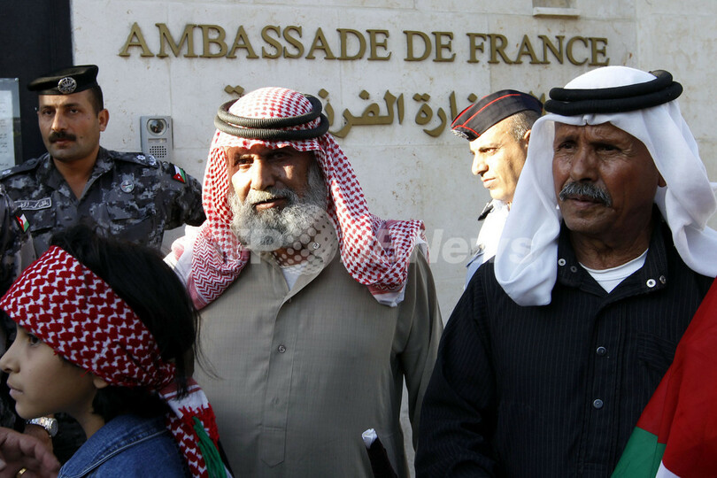 【6月20日 AFP】ヨルダンの首都アンマン(Amman)で19日、フランス通信社(AFP)現地支局の閉鎖を求める若者ら100人余りが、仏大使館前で座りこみの抗議デモを行った。