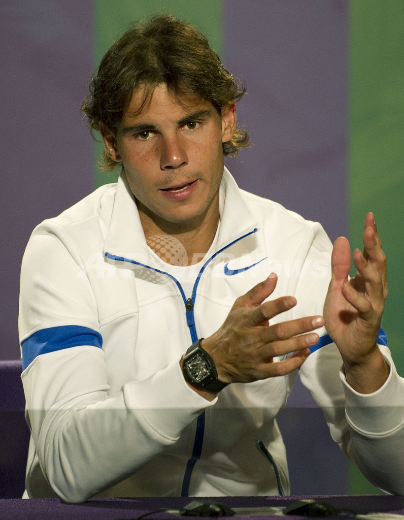 【6月20日 AFP】テニス、ウィンブルドン選手権(The Championships Wimbledon 2011)開幕を20日に控え、世界ランク1位のラファエル・ナダル(Rafael Nadal、スペイン)がロンドン(London)で19日、記者会見を行った。