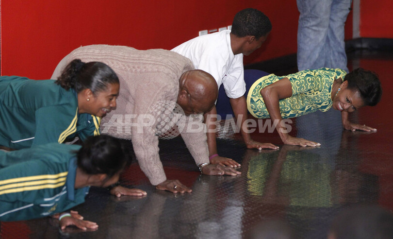 オバマ夫人が腕立て伏せやサッカー、エイズ予防イベントで 南ア