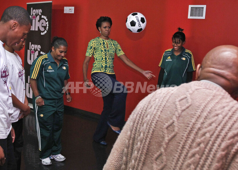 オバマ夫人が腕立て伏せやサッカー、エイズ予防イベントで 南ア