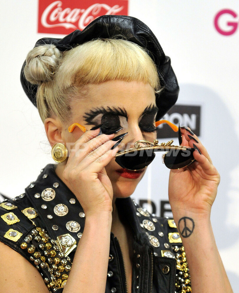 アニメ風?ガガ、デカ目メークで会見