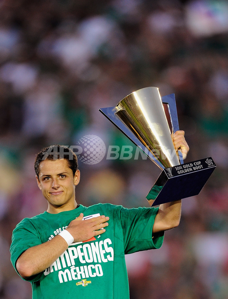 イングランド・プレミアリーグのマンチェスター・ユナイテッド(Manchester United)に所属するハビエル・エルナンデス(Javier Hernandez)が7ゴールで得点王に輝くとともに、今大会の最優秀選手(MVP)に選出された。(c)AFP