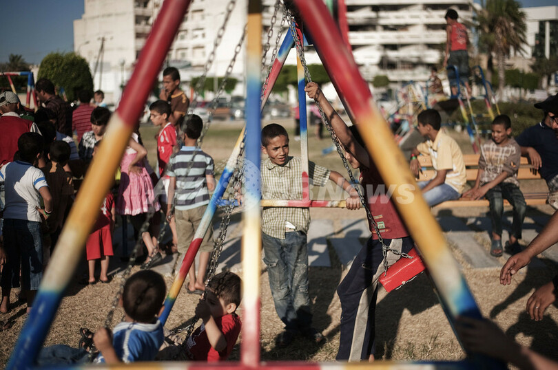 写真はミスラタの自由広場で遊ぶ子どもたち(2011年6月24日撮影)。(c)AFP/GIANLUIGI GUERCIA