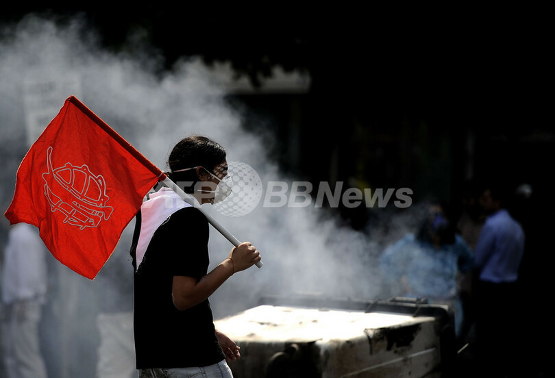 【6月29日 AFP】ギリシャで28日、政府の財政緊縮策に反対する主要労組がゼネスト入りする中、同じく政府の方針に抗議する1万人が首都アテネ(Athens)の国会議事堂前の広場でデモを行った。参加した一部の若者が火炎びんを投げ付けるなどして暴徒化し、警察の暴動鎮圧部隊が催涙ガスを発射する事態となった。