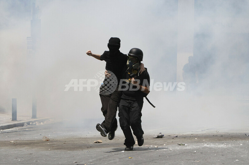 【6月29日 AFP】ギリシャで28日、政府の財政緊縮策に反対する主要労組がゼネスト入りする中、同じく政府の方針に抗議する1万人が首都アテネ(Athens)の国会議事堂前の広場でデモを行った。参加した一部の若者が火炎びんを投げ付けるなどして暴徒化し、警察の暴動鎮圧部隊が催涙ガスを発射する事態となった。