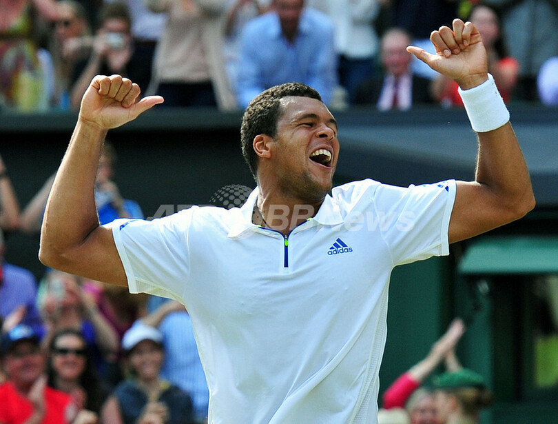【6月30日 AFP】テニス、ウィンブルドン選手権(The Championships Wimbledon 2011)は29日、英ロンドン(London)で男子シングルス準々決勝が行われ、大会第12シードのジョーウィルフリード・ツォンガ(Jo-Wilfried Tsonga、フランス)が、6度の大会優勝経験を持つ第3シードのロジャー・フェデラー(Roger Federer、スイス)を3-6、6-7、6-4、6-4、6-4で下し、準決勝進出を決めた。