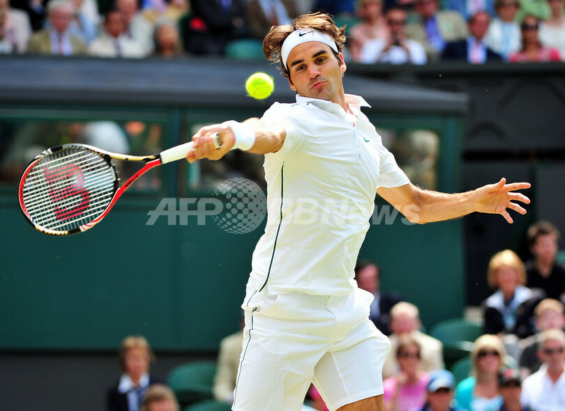 【6月30日 AFP】テニス、ウィンブルドン選手権(The Championships Wimbledon 2011)は29日、英ロンドン(London)で男子シングルス準々決勝が行われ、大会第12シードのジョーウィルフリード・ツォンガ(Jo-Wilfried Tsonga、フランス)が、6度の大会優勝経験を持つ第3シードのロジャー・フェデラー(Roger Federer、スイス)を3-6、6-7、6-4、6-4、6-4で下し、準決勝進出を決めた。