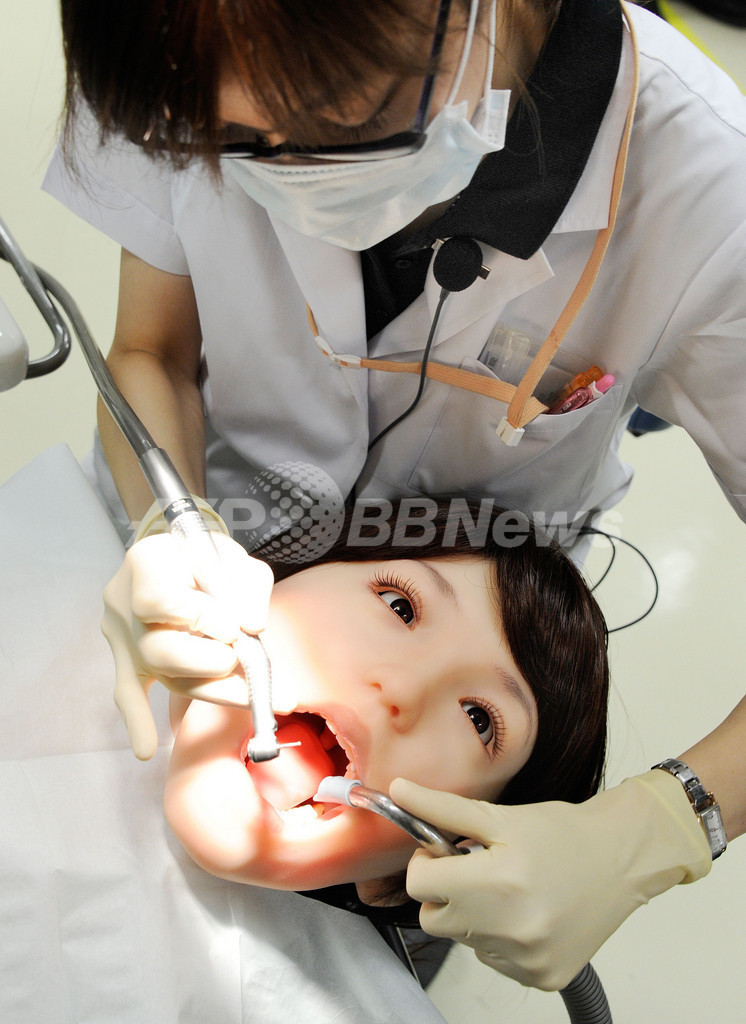 【6月30日 AFP】都内の昭和大学(Showa University)歯学部付属の昭和大学歯科病院で患者ロボットの改良版、「昭和花子2(Hanako Showa 2)」を使って治療のデモンストレーションをする歯科医。