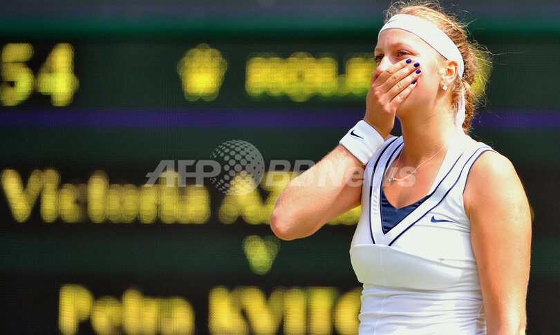 子供のころ、ナブラチロワ氏から影響を受けたクヴィトバは「ロッカールームでマルティナに会って、幸運を祈ってると言ってもらったの。とても嬉しいけど、決勝に進出したのは信じられない。人生最良の日よ」と語っている。(c)AFP/Dave James