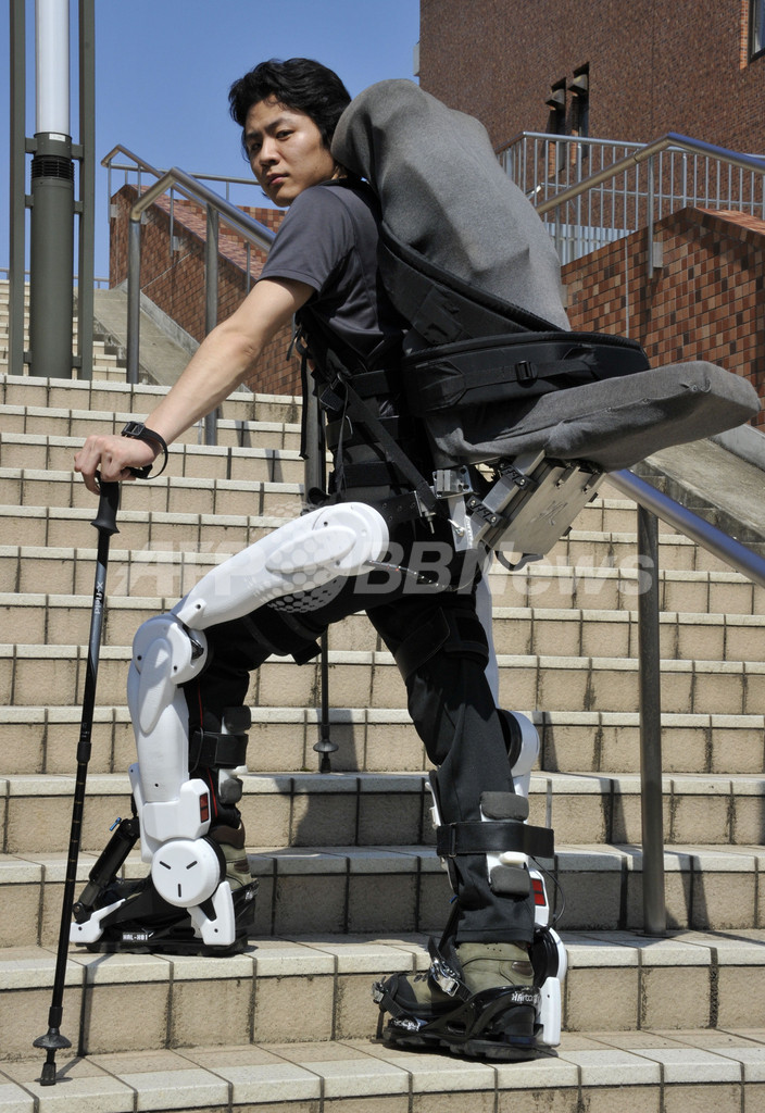 人間の動作を支援するバッテリー駆動のロボットスーツ「HAL(ハル)」を着用した介助者に背負ってもらう形で、内田さんは5日にモン・サンミシェルに登る。
