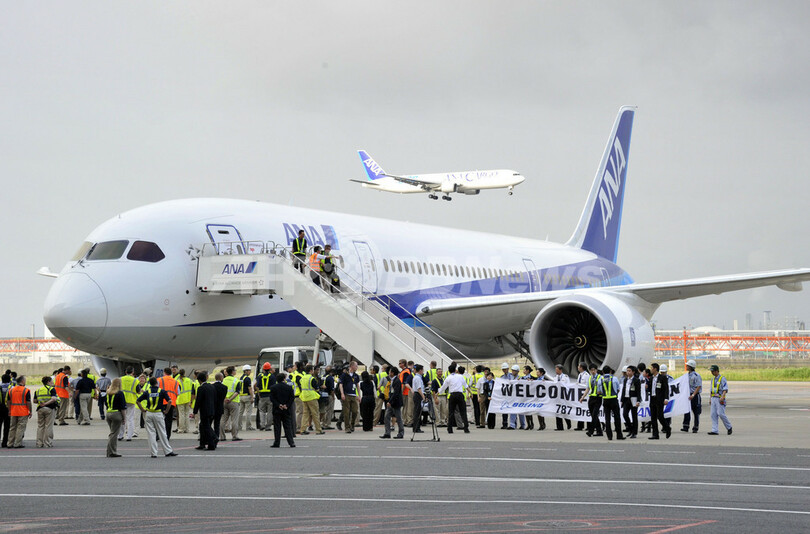 ニュース 政治・経済 新世代「ボーイング787」、羽田空港に着陸 2011年7月4日 6:46 発信地:東京 [ アジア・オセアニア 東京 ] このニュースをシェア ‹ › ❮ 2/8 ❯ 全日本空輸(All Nippon Airways、ANA)が9月から国内線に導入する予定の米航空機大手ボーイング(Boeing)の新世代旅客機「ボーイング787ドリームライナー(Boeing 787 Dreamliner)」が3日、テスト飛行のため羽田空港に到着した。羽田空港をふくむ日本国内の各空港を結んで、10日まで試験飛行を行う(2011年7月3日撮影)。(c)AFP/Yoshikazu TSUNO 画像作成中 ! 【7月4日 AFP】全日本空輸(All Nippon Airways、ANA)が9月から国内線に導入する予定の米航空機大手ボーイング(Boeing)の新世代旅客機「ボーイング787ドリームライナー(Boeing 787 Dreamliner)」が3日、テスト飛行のため羽田空港に到着した。羽田空港をふくむ日本国内の各空港を結んで、10日まで試験飛行を行う。(c)AFP 政治・経済 一覧へ> メディア・報道関係・法人の方向け 写真・動画 購入のお問合せ>