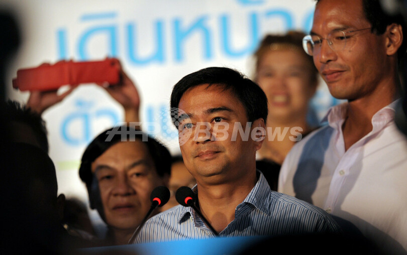 開票結果をうけ、アピシット首相は首都バンコク(Bangkok)の党本部で「結果は明らかだ。貢献党が勝ち、民主党が負けた」と支持者らを前に敗北宣言を行った。