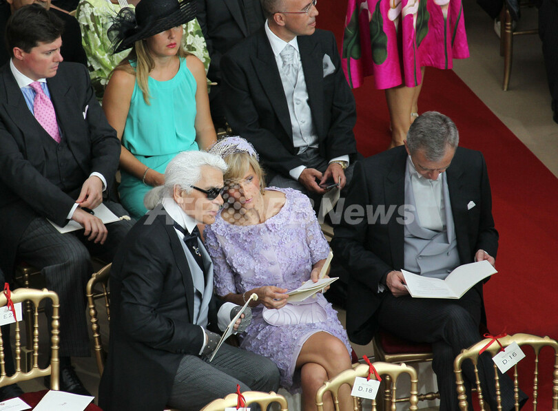 会場には、公妃のウエディングドレスを手がけたジョルジオ・アルマーニ(Giorgio Armani)をはじめ、カール・ラガーフェルド(Karl Lagerfeld)やロベルト カヴァリ(Roberto Cavalli)といったデザイナーや、モデルのイネス・ド・ラ ・フレサンジュ(Ines de la Fressange)、ナオミ・キャンベル(Naomi Campbell)、「LVMH」のベルナール・アルノー(Bernard Arnault)会長兼CEO夫妻などファッション界の大御所も多数出席した。(c)AFP